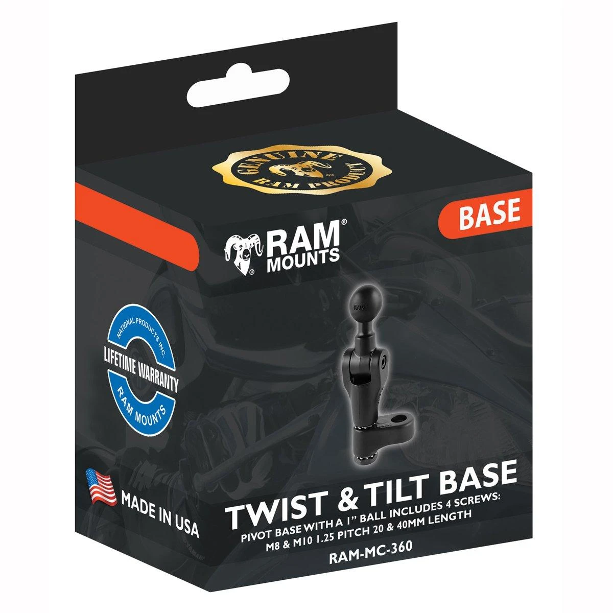 Ram Mount Twist and Pivot Base 1 Inch Ball Manufacturer Spec